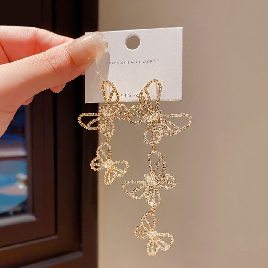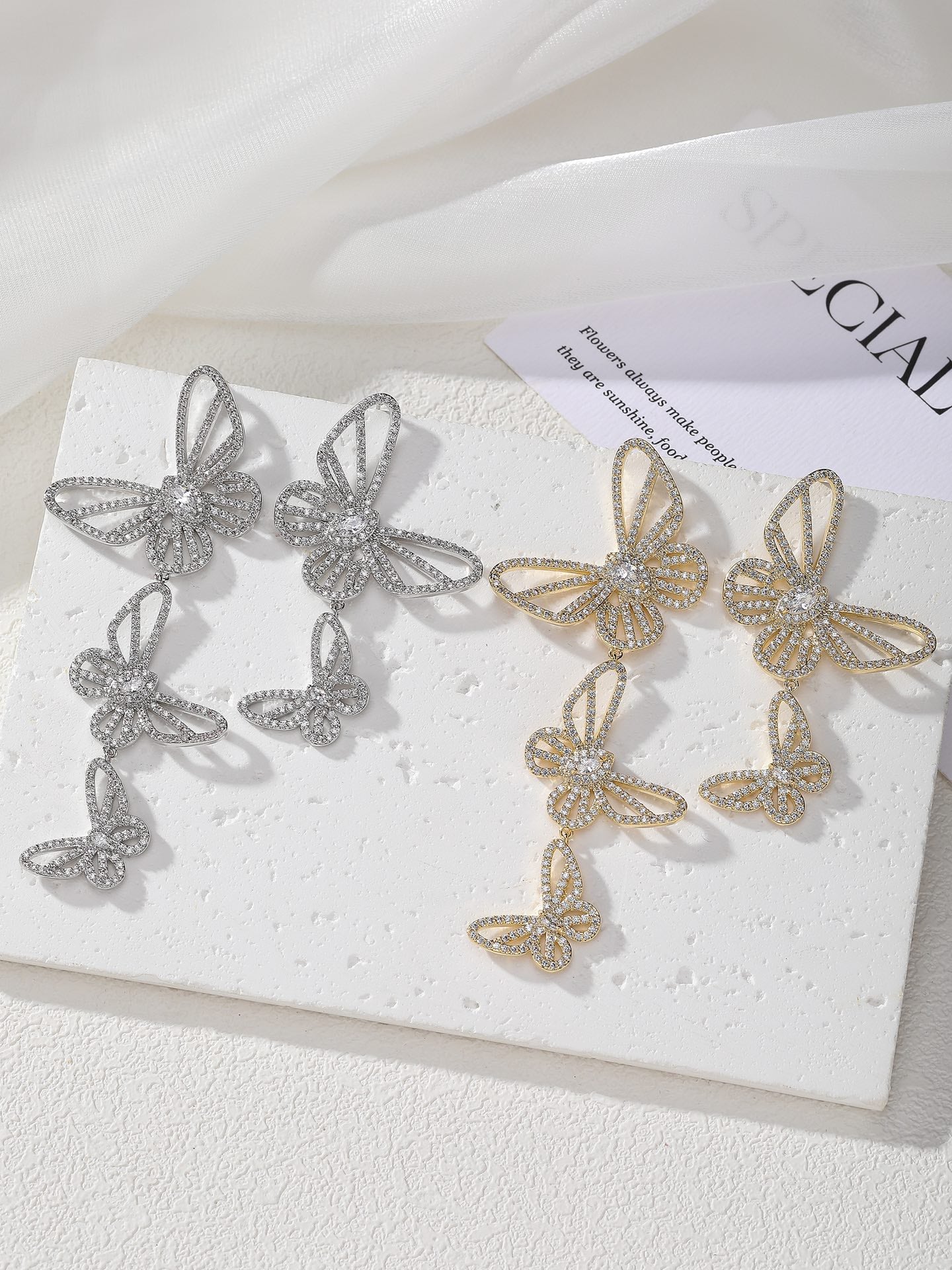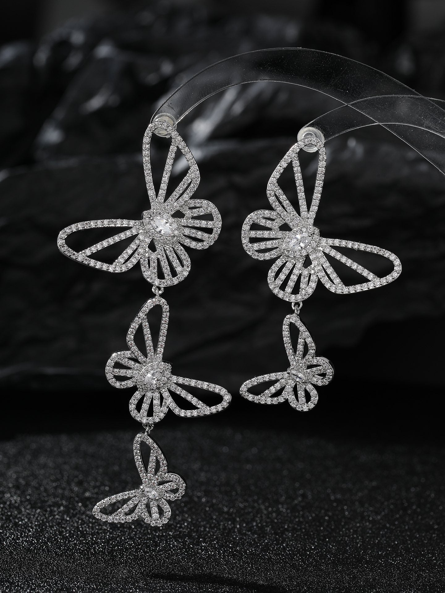 أقراط فراشة غير متماثلة - أقراط أنيقة طويلة مرصعة بالزركون بالكامل