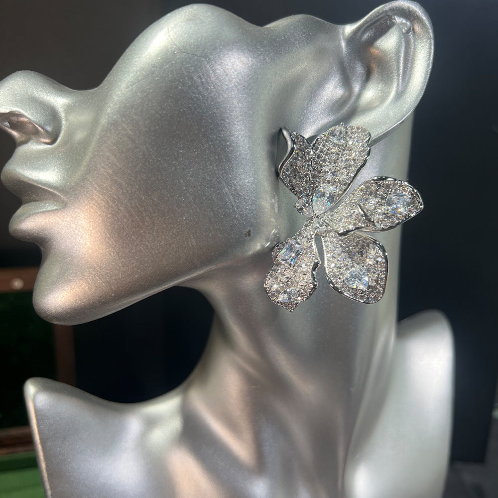 أقراط زهرة كبيرة - أقراط خفيفة الوزن فاخرة عالية الجودة مرصعة بالكامل بالزركون