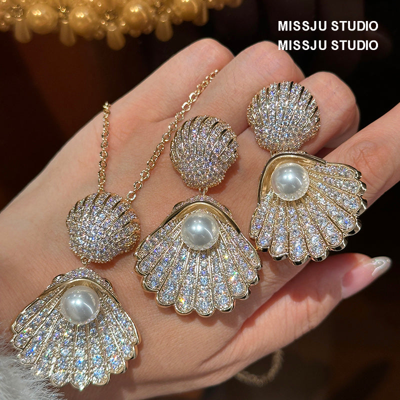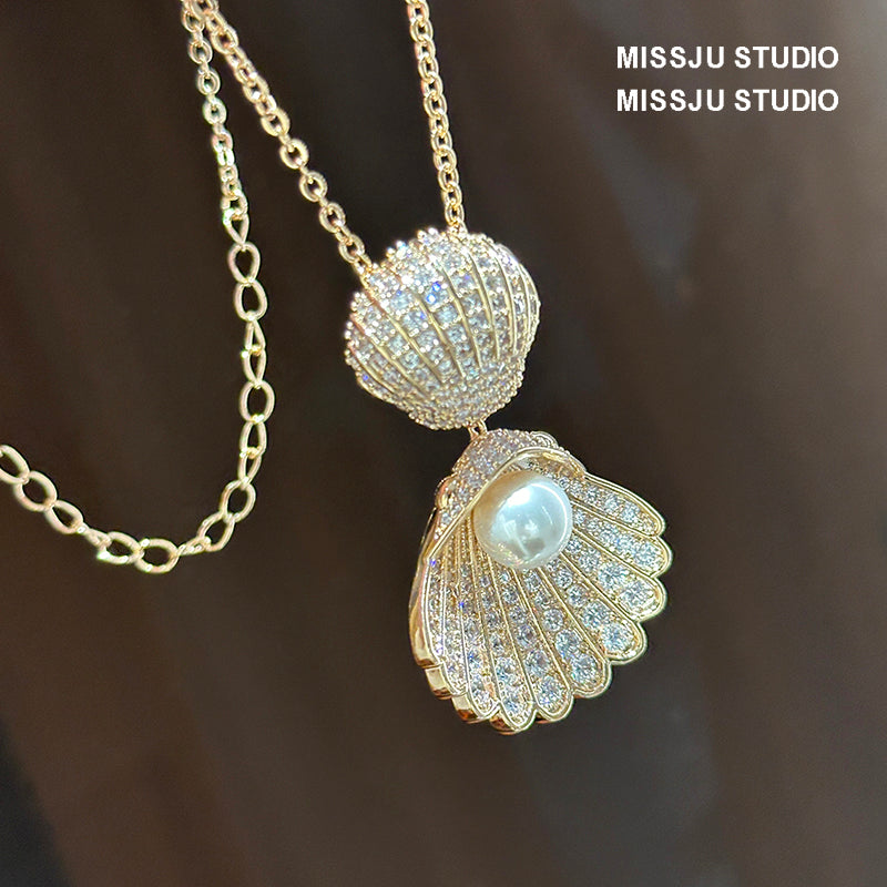 عقد لؤلؤ كبير الحجم على شكل صدفة/صدفة صدفية - بسيط وأنيق