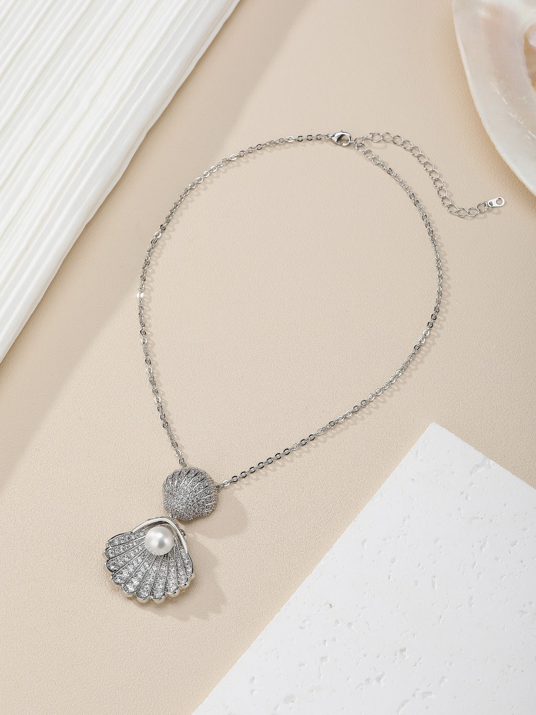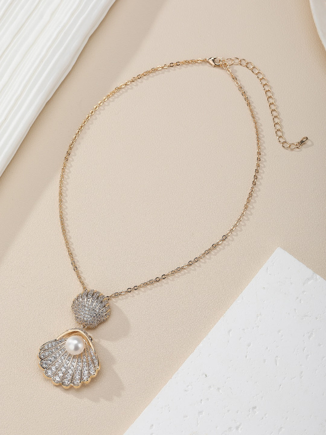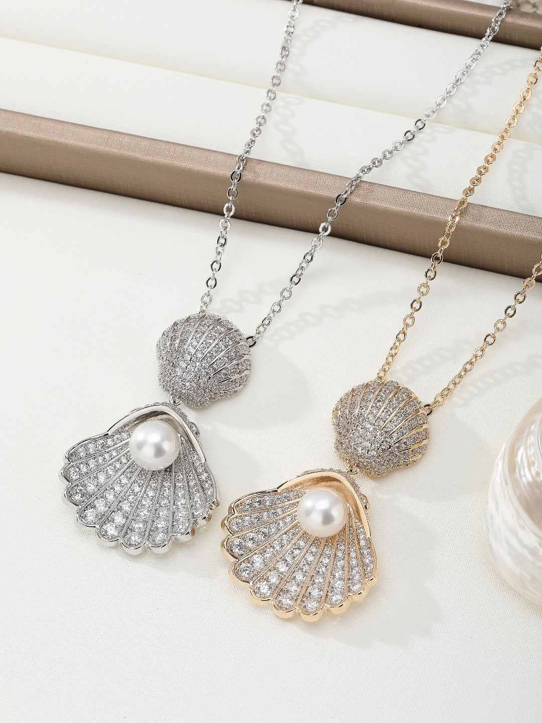 أقراط صدفية مرصعة بأحجار الزركون الدقيقة واللؤلؤ - أقراط أنيقة